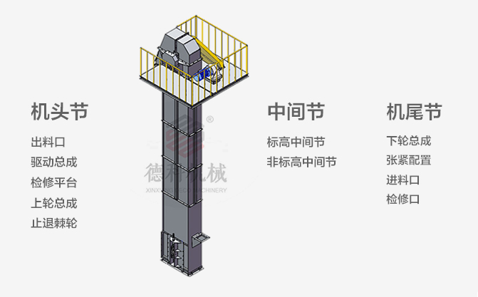 斗式提升機(jī)是利用均勻固接于牽引構(gòu)件上的數(shù)個(gè)料斗,垂直向上提升物料的連續(xù)輸送性機(jī)械。
